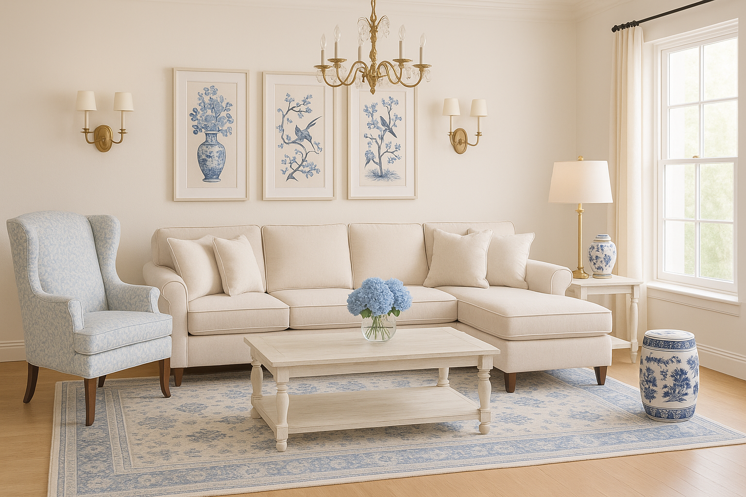 Living Room Concept A classic palette of blue and ivory layered with timeless textures, soft patterns and quite sophistication.